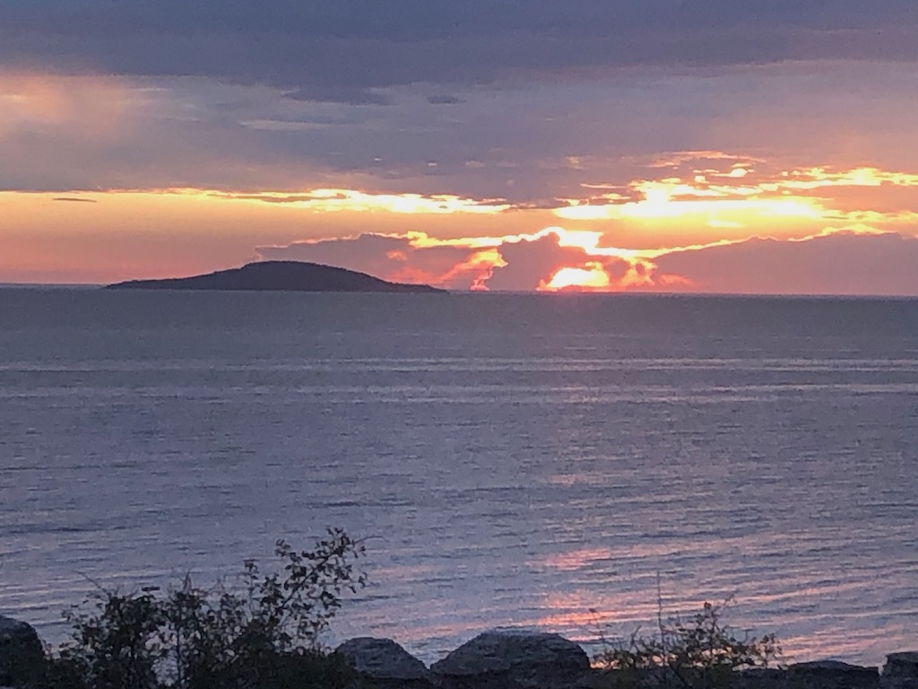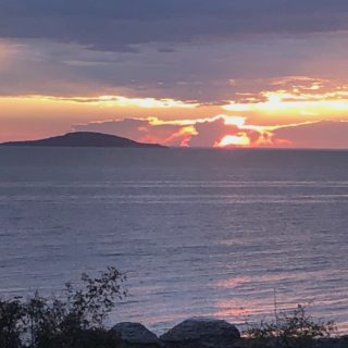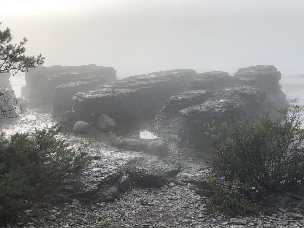 Vi möts vid P-platsen söder om Byrums raukar för att promenera ett hundratal meter längs kusten. Med blicken fäst vid Blå Jungfrun berättas om de miljoner och tusentals år som format landskapet vi ser och stenen vi går på.